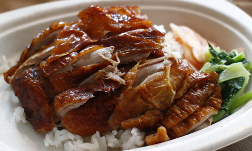 Pictures: some of the 25 tasty menus listed in the Street Food Bangkok app. From left: roasted duck on steamed rice, kanom krok (a kind of Thai sweet), and mango sticky rice.