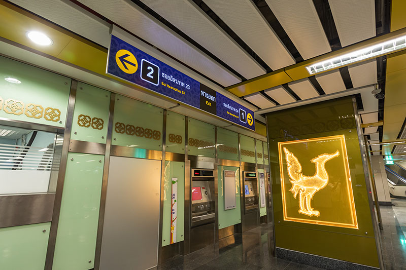 The area of Bangkok covered by the four new stations is home to many of the city’s most spectacular and revered attractions; such as, the Grand Palace, Wat Phra Kaeo (Temple of the Emerald Buddha) and Wat Pho (Temple of the Reclining Buddha). As such, the design and decoration of the stations both celebrates and honours this, and even their above ground architecture aims to help the buildings blend in and look a part of the community.