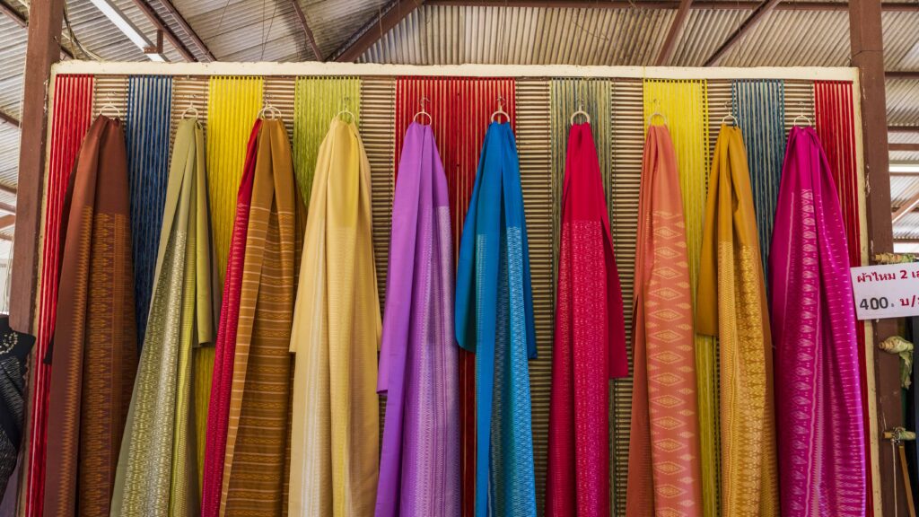 Thailand’s creativity shines in the daylight at markets, villages, and craft centres. In the Northeast, silk weaving communities in Khon Kaen and Surin preserve centuries-old traditions, while Chiang Mai’s San Kamphaeng district is renowned for umbrella making and silver jewellery. In Lampang, pottery workshops showcase distinctive northern designs, and OTOP markets nationwide present handmade products rooted in community pride. In Hua Hin, Khomapastr, a heritage textile house dating back to the 1940s, remains the origin of hand-printed Thai cotton fabrics and continues to produce signature designs that embody local identity.