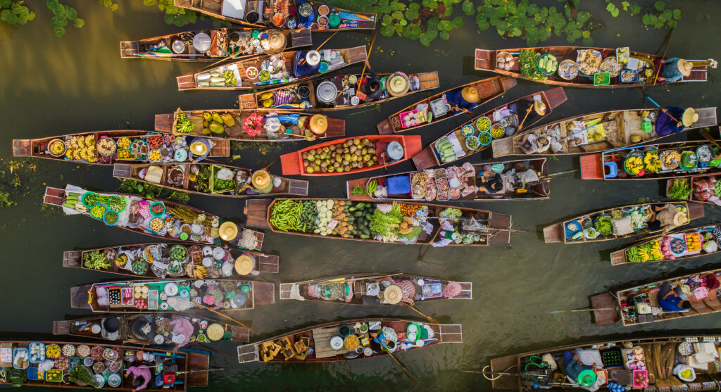 In Bangkok, the Khlong Bang Luang Floating Market showcases canalside life and community art spaces. In the South, the Bang Bai Mai Market in Surat Thani invites visitors on tranquil boat trips through its mangrove-lined waterways, while the Yakang Market in Narathiwat combines riverside shopping with activities such as boat rides to the Bang Nara Sluice Gate and the traditional “nok-aor” method of prawn catching.