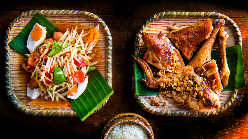 Daytime in Thailand begins with flavour. Floating markets such as Amphawa, Tha Kha, and Don Manora Floating Markets in Samut Songkhram, and Lao Tak Lak Floating Market in Ratchaburi bustle with vendors serving local favourites from boats, offering everything from grilled river prawns to coconut desserts. In Bangkok, the Khlong Lat Mayom Floating Market and the historic Song Wat area show how food and heritage go hand in hand. Street food is part of the rhythm of the day—boat noodles in Ayutthaya, kanom jeen curries in Nakhon Si Thammarat, or Isan-style som tam at a roadside stall.